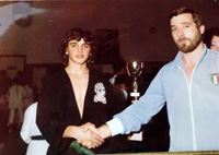 La mia prima gara è stata proprio in questa disciplina nel Febbraio del 1983 alla Coppa Italia di kick jitsu al Palalido di Milano organizzata dalla WJJF (World Ju Jitsu Federation), mi viene ancora la pelle d’oca a distanza di tanti anni perchè ricordo che ho vinto la medaglia d’oro, vittoria ottenuta nonostante una lussazione alla spalla procurata in palestra durante gli allenamenti, ma testardo avevo deciso di partecipare lo stesso alla gara. Sempre nel 1983 mese di Aprile ho ottenuto un secondo posto alla Coppa Internazionale WJJF a Livorno.